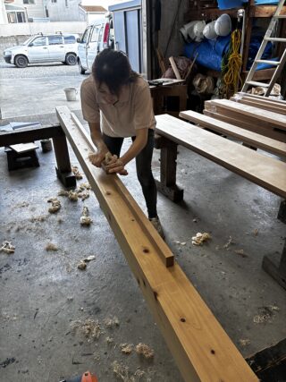おそらく 日本中で 監督さんが 鉋削り作業