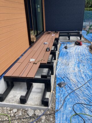 暑い中の外作業で大変でしたが、外壁と色もあっていてカッコ良いデッキが出来ました。